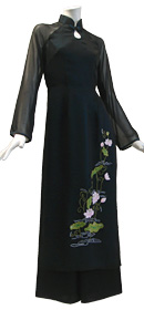 | オーダーメイド・アオザイ.com > オリエンタルな二枚仕立て!ロータス刺繍アオザイ |
