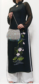 | オーダーメイド・アオザイ.com > オリエンタルな二枚仕立て!ロータス刺繍アオザイ |